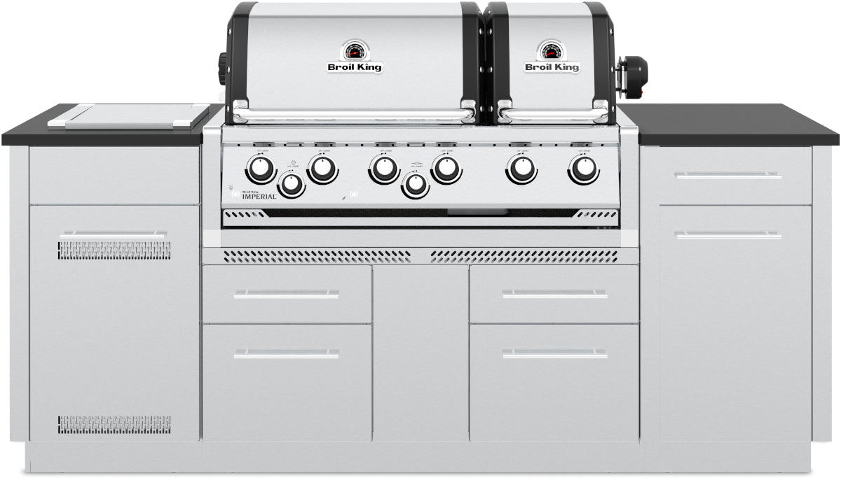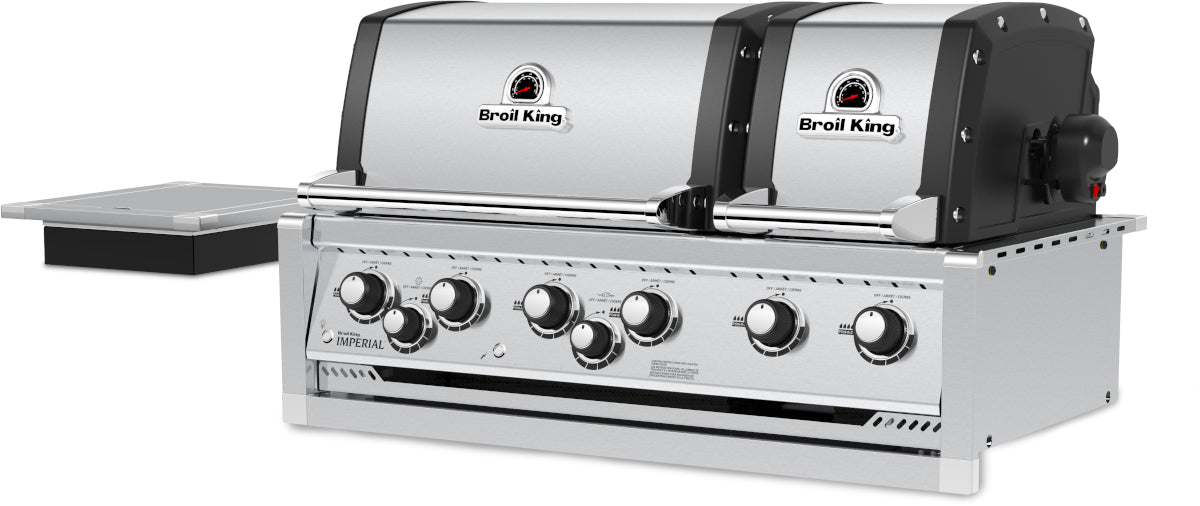 The Broil King Imperial S 690 Built-In features two totally independent ovens with a total of 4,838 sq cm of primary cooking surface and includes 6 stainless steel Dual-Tube burners, 6 professional cast stainless steel cooking grids, warming rack, stainless steel Flav-R-Wave cooking system, and two electronic igniters, oven lights, illuminated control knobs and stainless steel ignition switch.