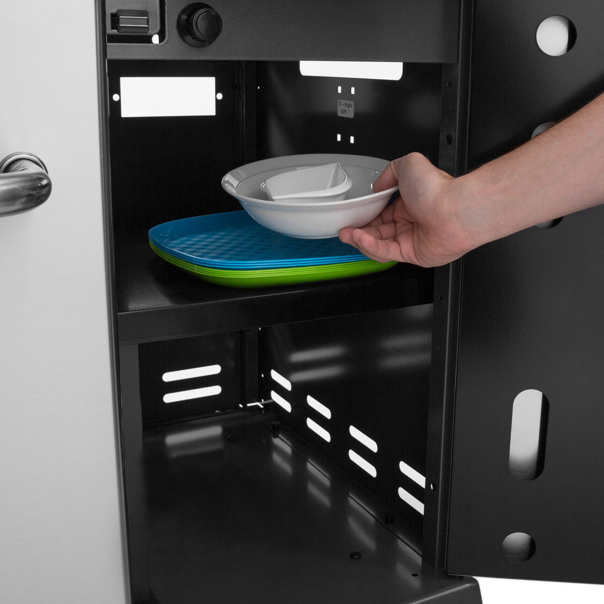 - Enclosed cabinet with stainless steel cabinet doors
